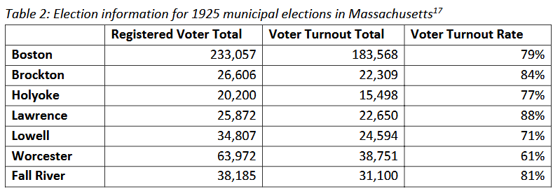 Returning to the report I mentioned by MassVote, “Reinvigorating Our Democracy Understanding Local Elections and How Massachusetts May Increase Municipal Voter Turnout” the following data tables and middle quotation are excerpts that show the change over time, and reflect on the importance of local elections.